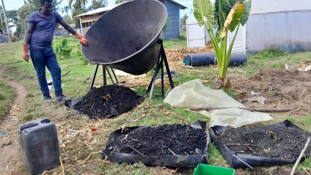 To demonstrate its potential, KIYA has established five demo plots across Kisumu’s sub-counties. Each host farmer receives a package of seedlings — black nightshade (managu) and kale (sukuma wiki) — along with biochar amendments and agronomic support. Over six months, the trial will monitor soil conditions before, during, and after biochar application. The produce harvested will remain with the host families, ensuring immediate food security benefits while generating valuable data on crop performance.